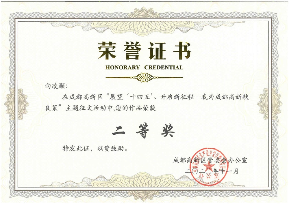 獻策“十四五” 共謀新發(fā)展 ——高新發(fā)展積極參與高新區(qū)“十四五”規(guī)劃征文活動并獲評二等獎