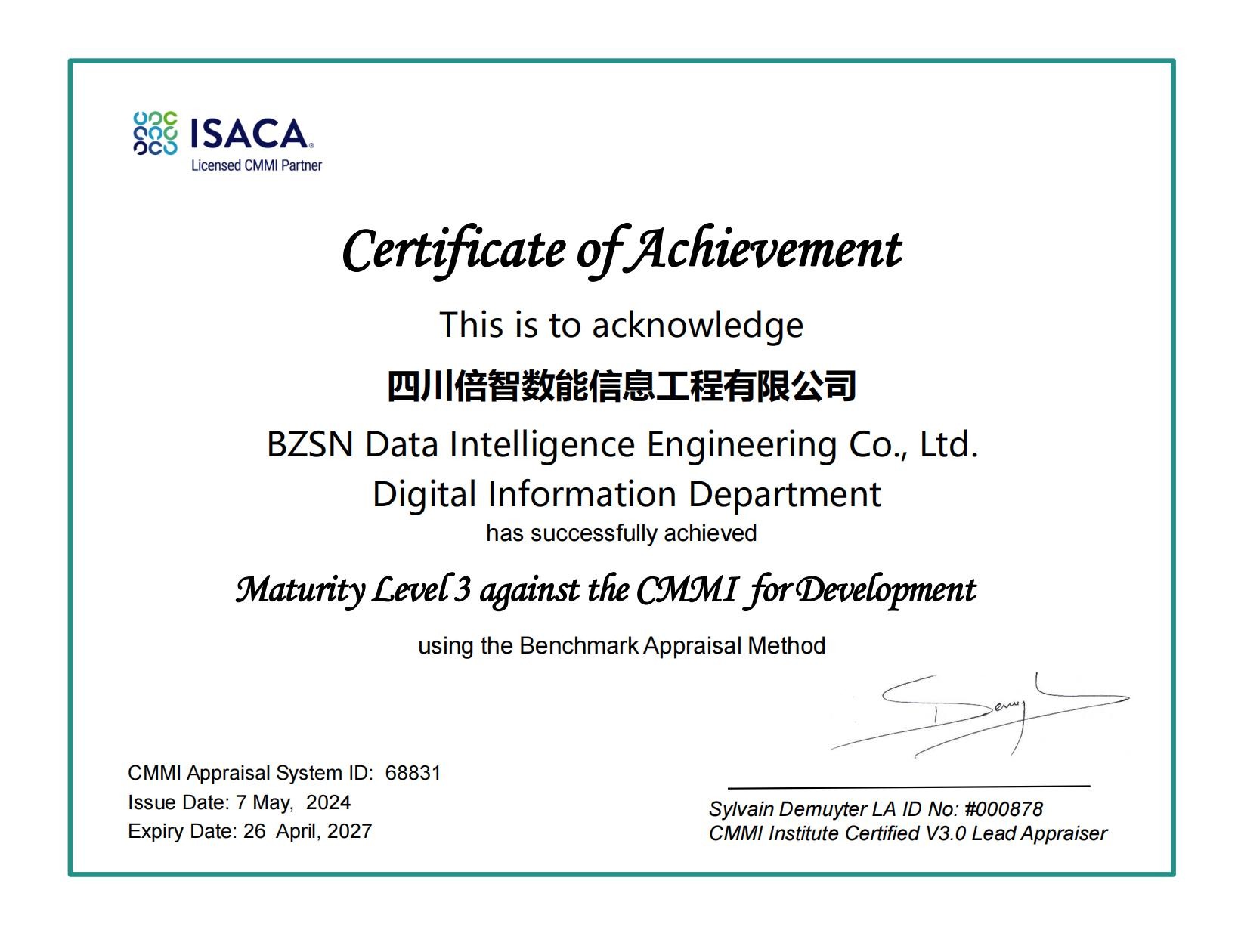 倍能公司再通過CMMI-3級認(rèn)證